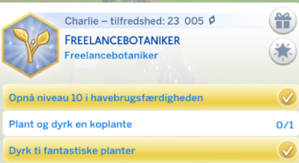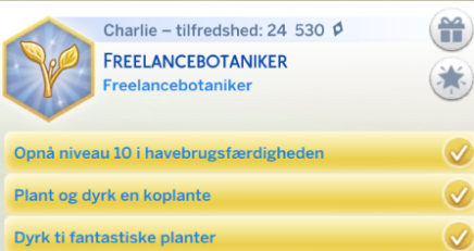 Din simmer har fuldført en Stræben! Din simmer er nu arvlet og plantet alverdens planter og har opfyldt sin drøm om at blive freelancebotaniker.