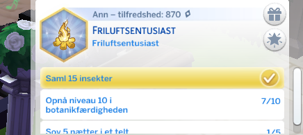 Din simmer har fuldført en Stræben! Din simmer er nu blevet et med naturen og er en sand overlever. Din simmer modtager en ekstra egenskab; Overlever