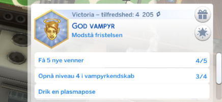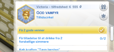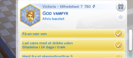 - Din simmer har fundført en Stræben. Din simmer er nu en god vamyr og ved at de kan holde kuren..