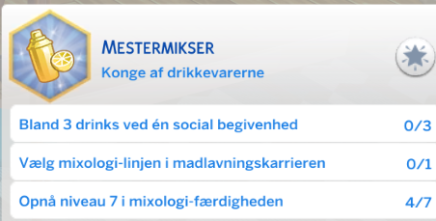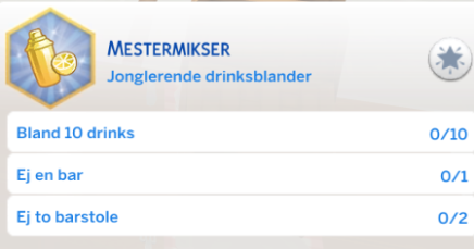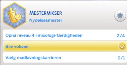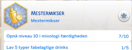- Din simmer har fuldført en Stræben! Din simmer er nu blevet den bedste til at blande drinks. Din simmer modtager Egenskaben; Eliksirmester.