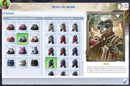 - For at få sodan én Droid, kræver det at din simmer har Galaktiske Kreditter nok! Køb den i Nabolaget; Den Første Orden-diskrikt. Her finder du det eneste sted, hvor du kan købe Droid's. BB-Droid og R-droid. Det kræver dog at din simmer har 10 Metalskrot i deres Inventarliste.