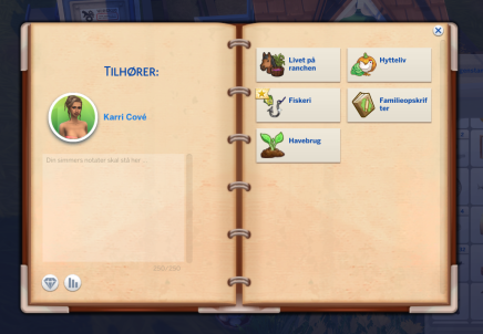 - Samlinger kan tilgås fra både en simmers inventar og notesbogen.