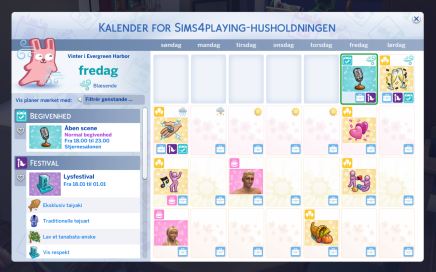 Kalenderen, der tidligere kun var tilgængelig med Årstider, er nu en del af grundspillet, så du kan se kommende begivenheder som for eksempel fødselsdage, arbejdsskemaer, festivaler og markeder. Du kan endda bruge den til at planlægge begivenheder, så nu er det bare at gå i gang med at planlægge den fest!