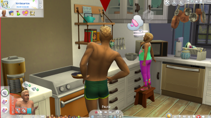 Nu behøver din simmer ikke lave mad alene længere. Simmere kan nu lave mad i grupper på op til fem simmere, inklusive børn. Begynd at lave mad sammen ved at markere køleskabet, komfuret eller en tom plads på køkkenbordet.