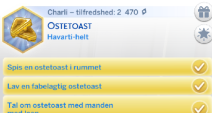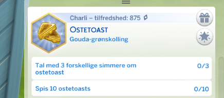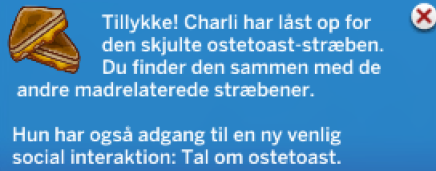 Denne skjulte Stræben kom sammen med The Sims 4 grundspil. Dette giver din simmer lyst til kun at spise Ostetost.