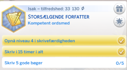 Når din simmer har alle disse 3 tilsammen kan din simmer skrive bogen; Livets bog på en computer.
