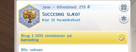 - Din simmer har fuldført en Stræben! Din simmer er nu blevet god til at Lærer af andre. Din simmer modtager en ekstra Egenskab; Lærer af andre.