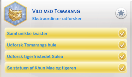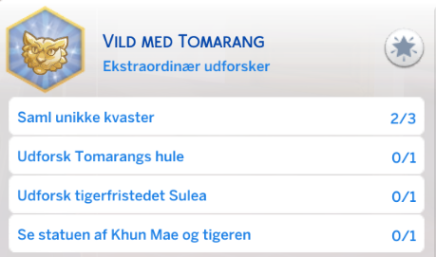 Din simmer er bedre til at lave Tomarang-mad finde kvaster, enes med simmere med egenskaben Landsbybarn og har mere succes med at udforske tigerfristedet Sulea og grotten ved Guldskægsbugten.