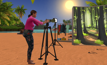 # Hvis du ejer pakken; Sims 4 - Bliv berømt, kan du også tilføje en Effekt maskine, som virkelig giver dine fotos ekstre liv og prikken over i’et!