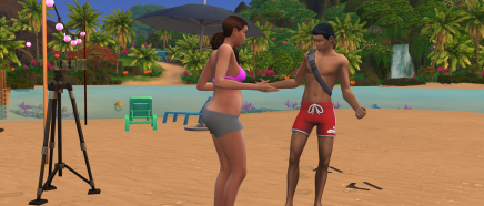 Ved at bruge interaktionen; "Tag et billede, mens modellen holder noget... ", gør det specielt, at dine simmer kan have Tumlinger med på sine fotos!