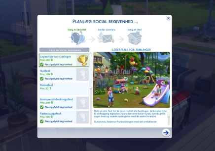 Nu kan din simmer holde Legeaftaler for sine dejlige små Tumlinger. Legeaftaler er en ny social begivenhed, hvor dine simmer kan få nye venne og låse op for genstande til dine simmere.