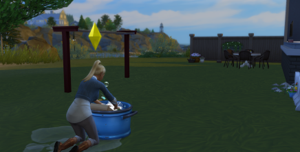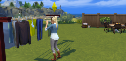 # Hvis du ikke placer nogle af de nye genstande fra Vaskedag på grunden, vil spillet ikke begynde at gøre simmernes tøj beskidt eller lave beskidte bunker tøj.