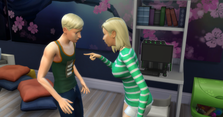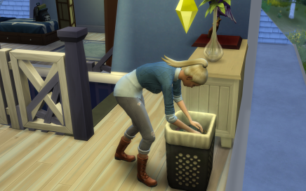 # Simmere der er "Doven" eller har "Snop" egenskab, vil automatisk efterlade deres tøj på gulvet. Bunker af beskidt tøj fra andre simmer, eller dem med egenskaben; "Ordensimmer", vil altid smide deres beskidte tøj i vaskekurven.