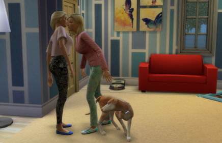 # Hvis du har instaleret Sims 4 Hunde & Katte, vil dine kæledyr kigge på både vaskemaskinen eller tørremaskinen. Derudover vil kattene "Slå til" vanddråber som falder ned fra det våde tøj.