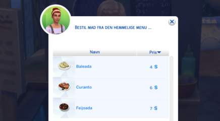 Når din simmer når det højeste niveau; "niveau 5", vil de have adgang til en "skjult menu", ved Madboden. Den skjulte menu, har 3 ekslusive retter. For at din simmer kan lave alle retterne dej hjemme, kræver det at din simmer har spist dem alle.