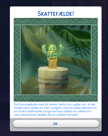 Der er kommet to hele nye samlinger din simmer kan samle på med Jungleeventyr game pakke. Omiskanske skattene, er der hele 13 forskellige genstande din simmer kan finde og de kan kun findes i templernes skattekister og via. disse chance kort.