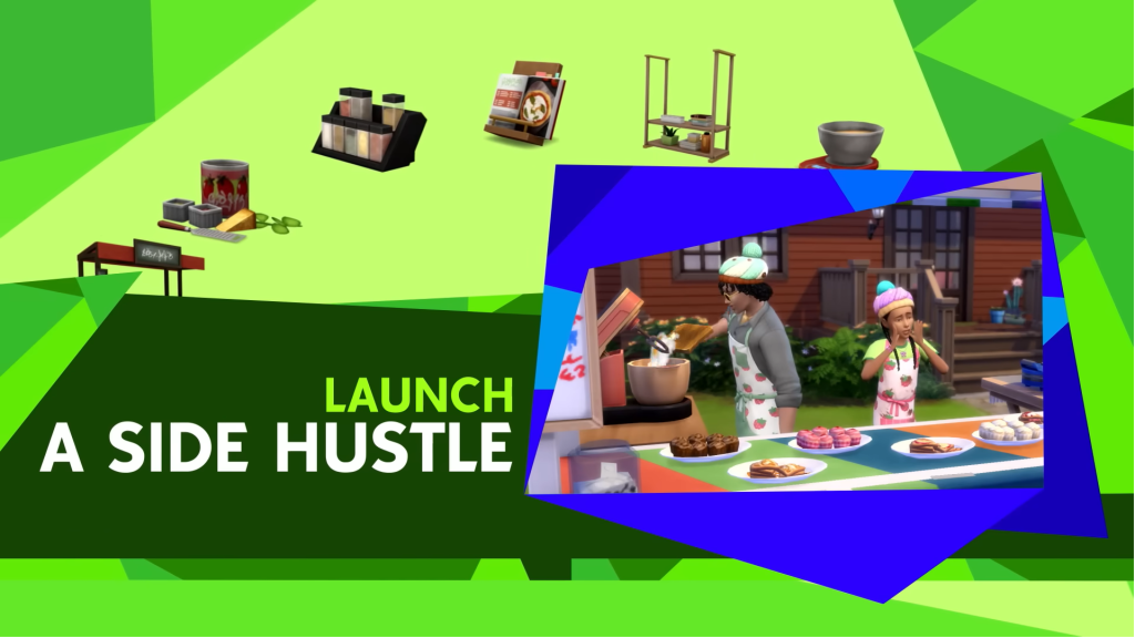Kunne du tænke dig en iværksætter? Simmere kan blive madstandsejere og etablere butik i forskellige partier, knytte bånd til deres kunder og være vidne til resultaterne af at sælge deres kulinariske kreationer. Spillere kan endda tilpasse navnet på The Anywhere Any Fare Food Stand og vælge de typer mad, de vil servere. Tip, tip: Vaffelmaskinen og bordpladepizzaovnens street food-stil opskrifter og bærbare funktioner gør dem til de perfekte ledsagere til madstanden.