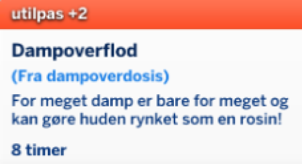 Hvis din simmer opholder sig længere tid efter denne humørstump; "Dampoverflod", gå der ikke længe før din simmer bliver alt for dehydreret og går hen og dør.