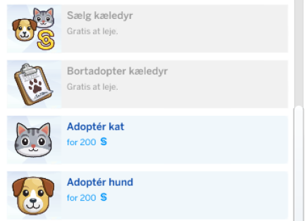 Dine simmere har også den mulighed; at sælge sine kæledyr. Dog kan de kun sælge, hvis man har hvalpe eller killinger i husholdningen.