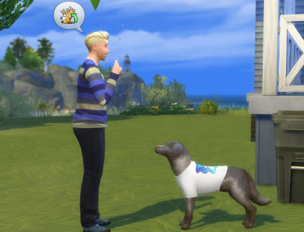 Her lære en simmer sin hund at dække. Lad din simmer blive ved med dette, til at der kommer en pop-up boks frem der fortæller, at din hund eller kat har lært tricket.